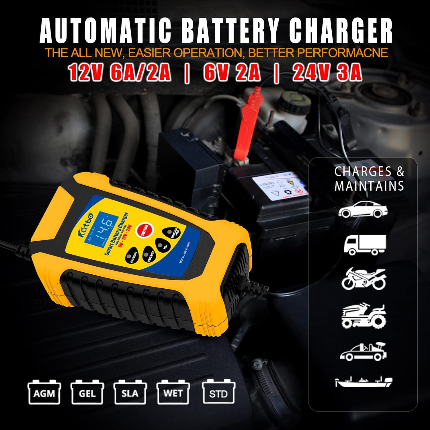 מטען חכם לסוללת רכב KATBO ועוד סוללות, מצברים ומטענים. לחצו למיפרט טכני מלא. צרו קשר לייעוץ מקצועי: 04-8520233