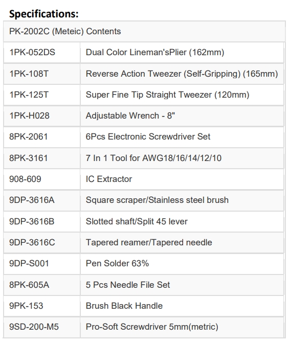 קיט כלי עבודה מקצועי לטכנאים - PK-2002C ועוד כלי עבודה ידניים. לחצו למיפרט טכני מלא. צרו קשר לייעוץ מקצועי: 04-8520233