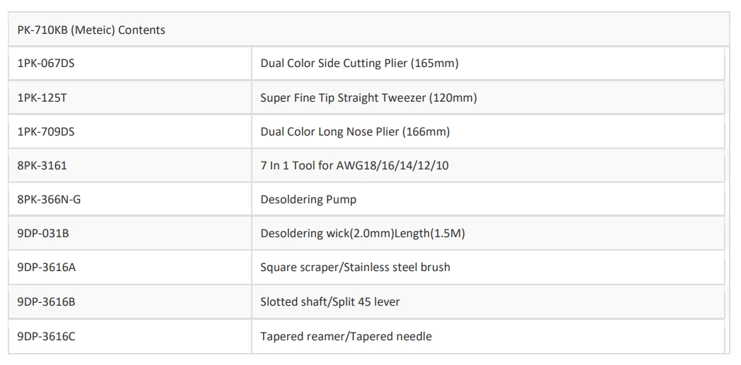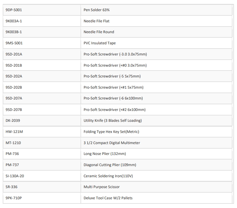 קיט כלי עבודה בסיסי לטכנאי אלקטרוניקה - PK-710KA PROSKIT ועוד כלי עבודה ידניים. לחצו למיפרט טכני מלא. צרו קשר לייעוץ מקצועי: 04-8520233