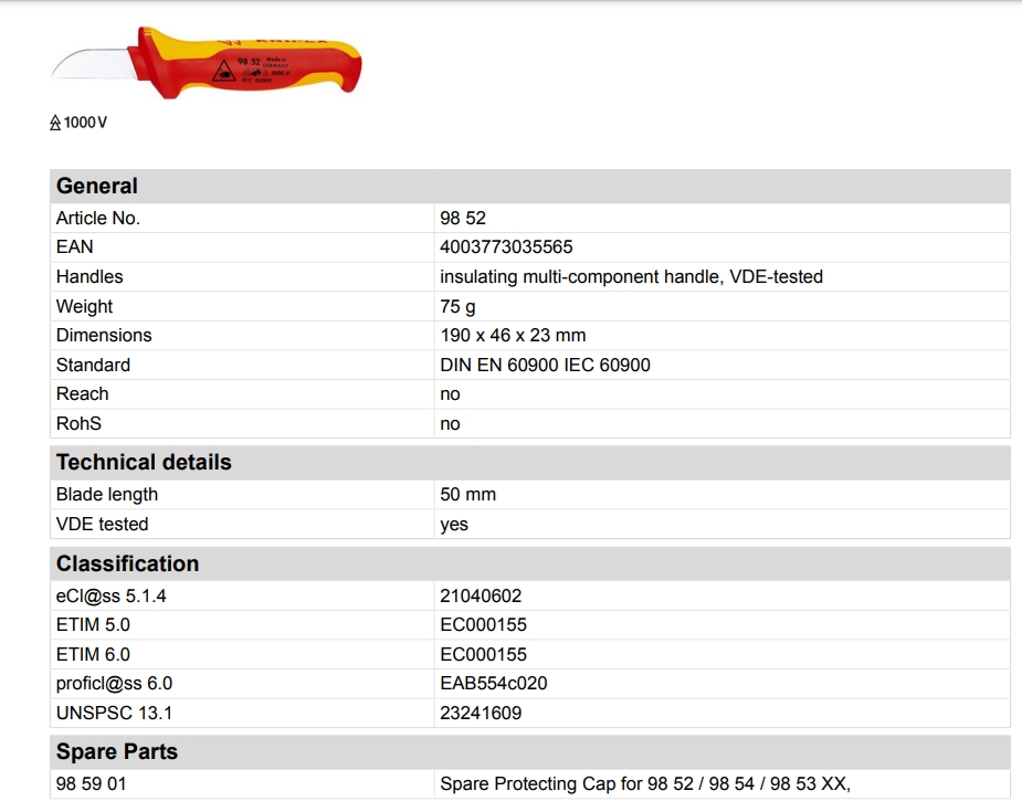 סכין מקצועי מבודד לחיתוך וגילוף כבלים - KNIPEX 98 52 KNIPEX ועוד כלי עבודה ידניים. לחצו למיפרט טכני מלא. צרו קשר לייעוץ מקצועי: 04-8520233