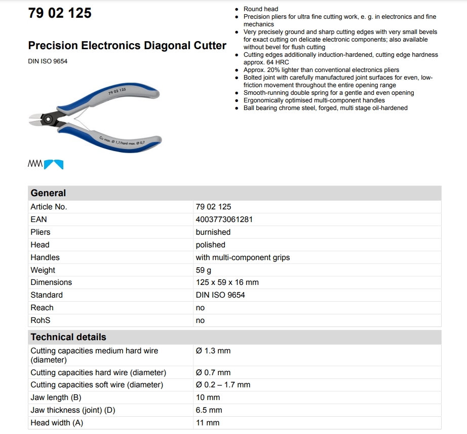 קטר מקצועי לאלקטרוניקה - KNIPEX 79 02 125 - 125 mm KNIPEX ועוד כלי עבודה ידניים. לחצו למיפרט טכני מלא. צרו קשר לייעוץ מקצועי: 04-8520233