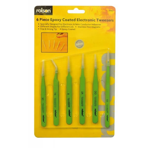 סט 6 פינצטות - מיוצרות מפלדת אל חלד מצופה אפוקסי - 6pc Epoxy Coated Tweezers ROLSON TOOLS ועוד כלי עבודה ידניים. לחצו למיפרט טכני מלא. צרו קשר לייעוץ מקצועי: 04-8520233