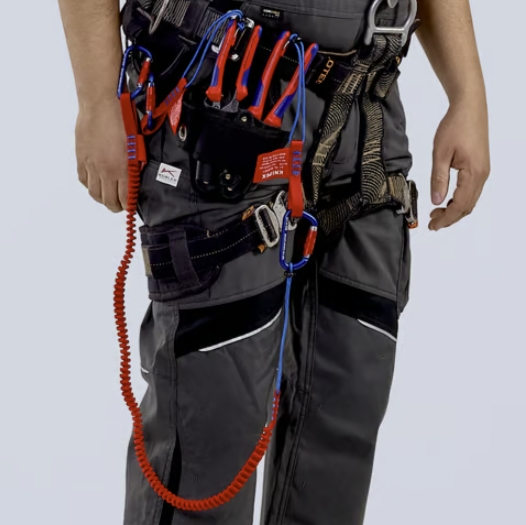 ♦ מערכת חיבור לכלים המיועדת למניעת נפילת כלים בעת עבודה בגובה, כגון בבנייה, טיפוס תעשייתי, טיפוס הרים או עבודות בגובה.