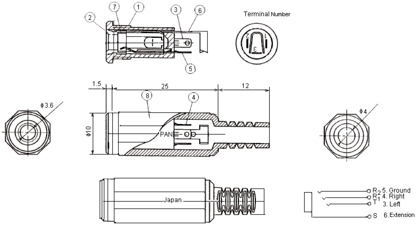 מחבר PL 3.5MM נקבה עם 4 מגעים להלחמה לכבל
