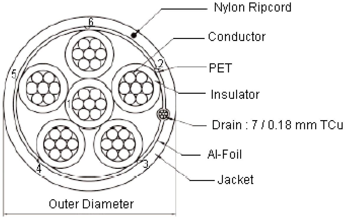 כבל פיקוד גמיש - 6 גידים 26AWG + סיכוך אלומיניום