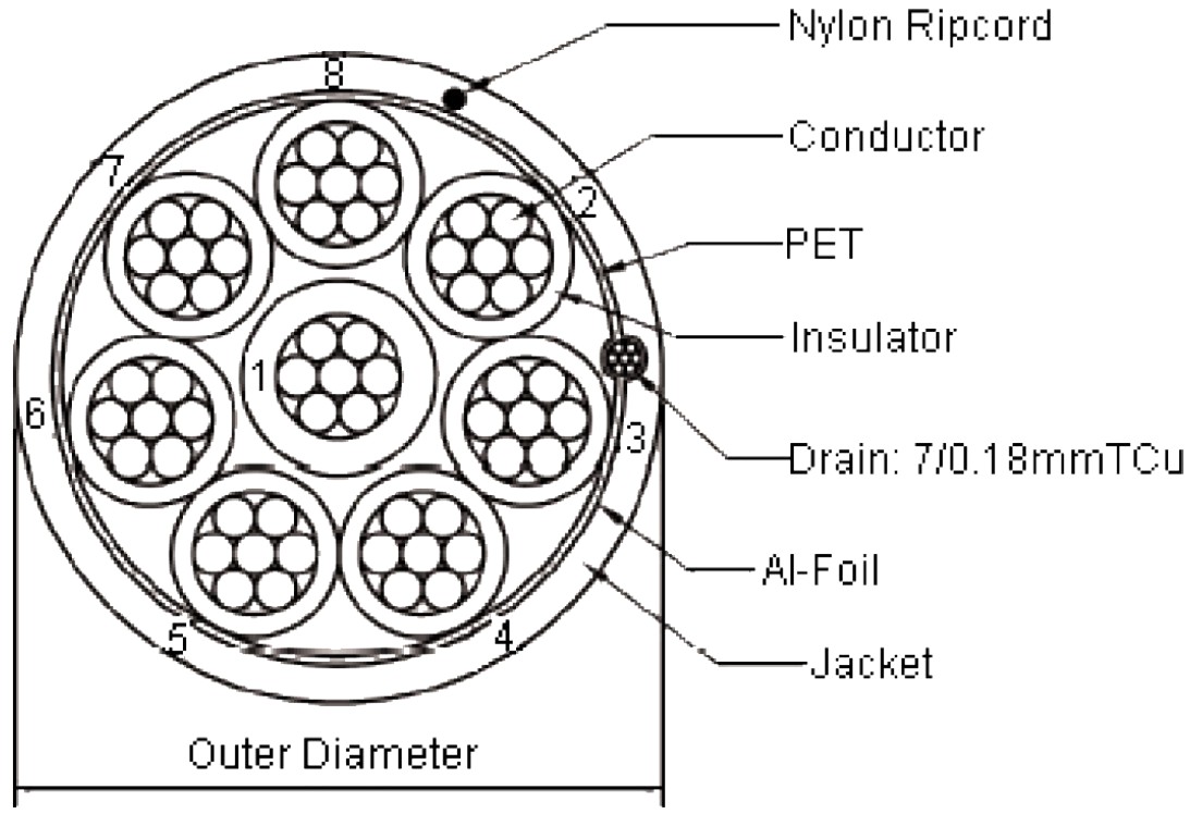 כבל פיקוד גמיש - 8 גידים 26AWG + סיכוך אלומיניום