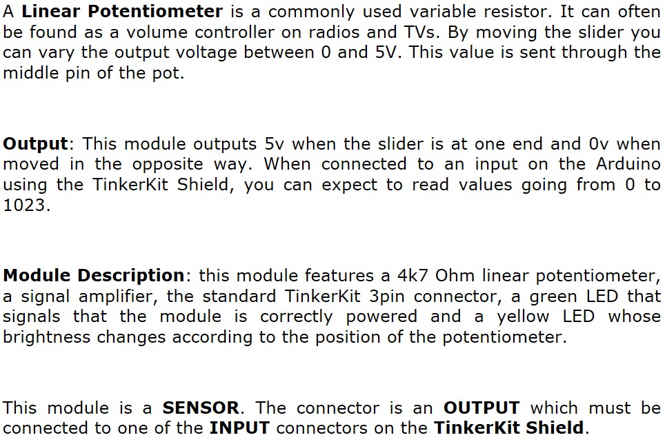 מודול פוטנציומטר לינארי - TINKERKIT LINEAR POTENTIOMETER