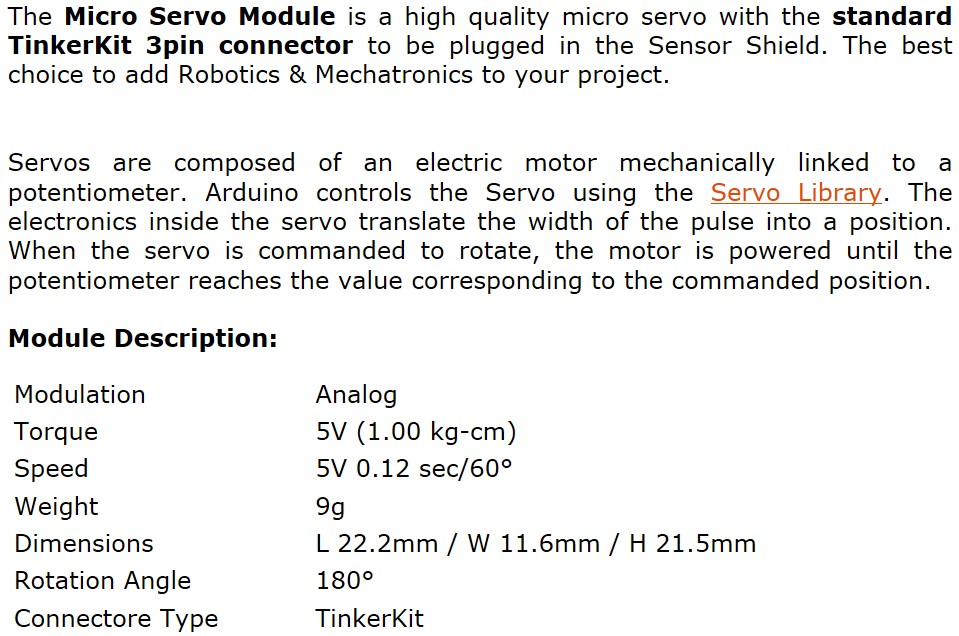 מודול מנוע מיקרו סרוו - TINKERKIT MICRO SERVO MODULE