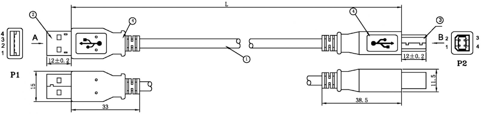 כבל 4.5M - A(M) ~ B(M) - USB 2.0