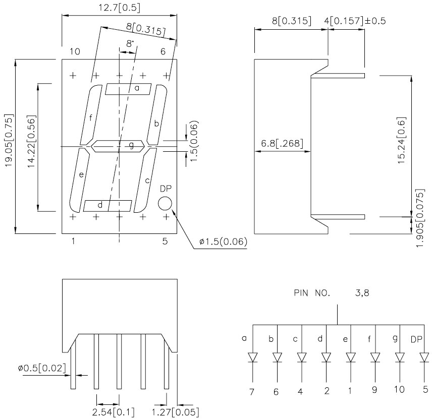 תצוגת 7SEGMENT אדומה - ספרה אחת - 14.22MM