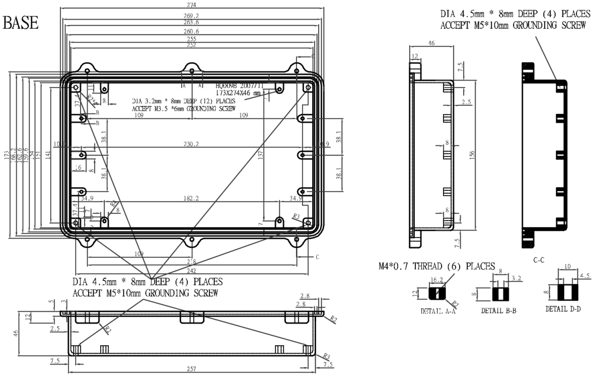 קופסת זיווד ממתכת - HQEMS SERIES 274X173X66MM