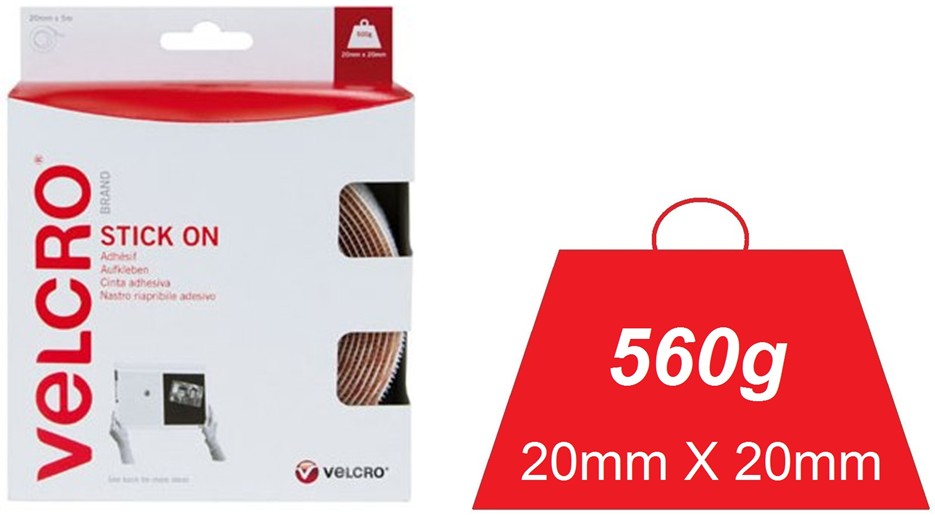 גליל ולקרו דביק לבן - VELCRO - HOOK & LOOP 20MM X 5M