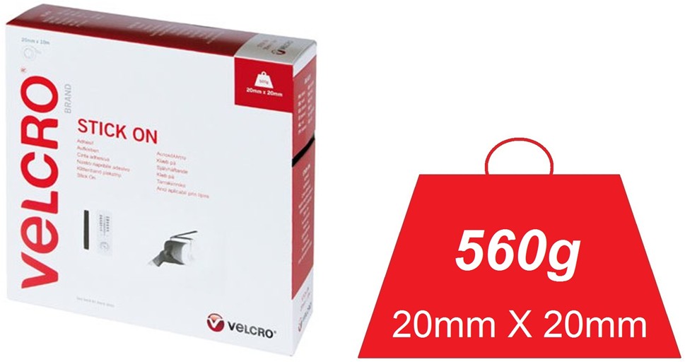 גליל ולקרו דביק שחור - VELCRO - HOOK & LOOP 20MM X 10M