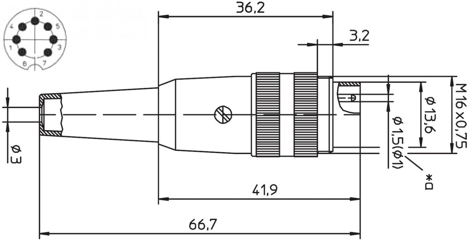 מחבר תעשייתי DIN SV - זכר להלחמה לכבל - 7 מגעים