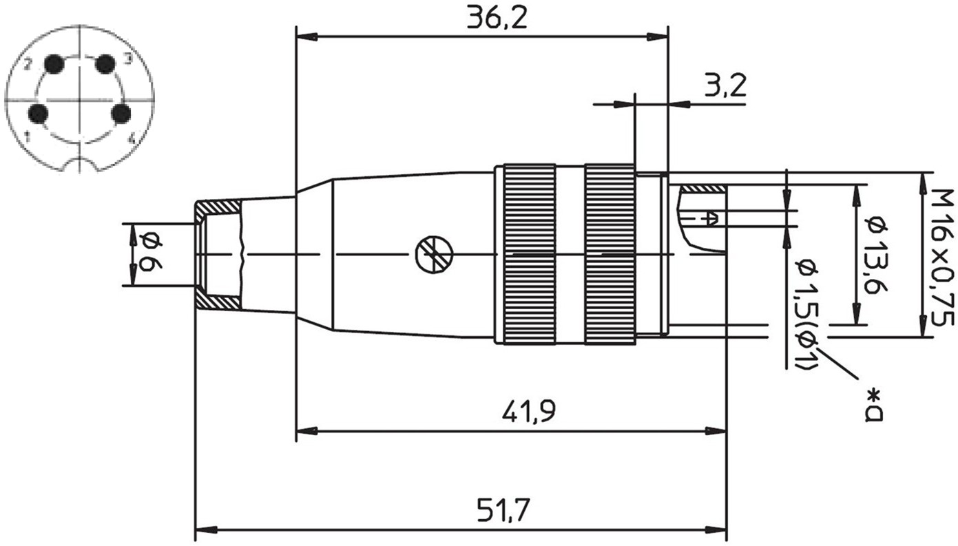 מחבר תעשייתי DIN SV - זכר להלחמה לכבל - 4 מגעים