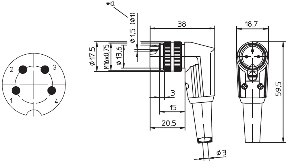 מחבר תעשייתי DIN SV - זכר זוויתי להלחמה לכבל - 4 מגעים