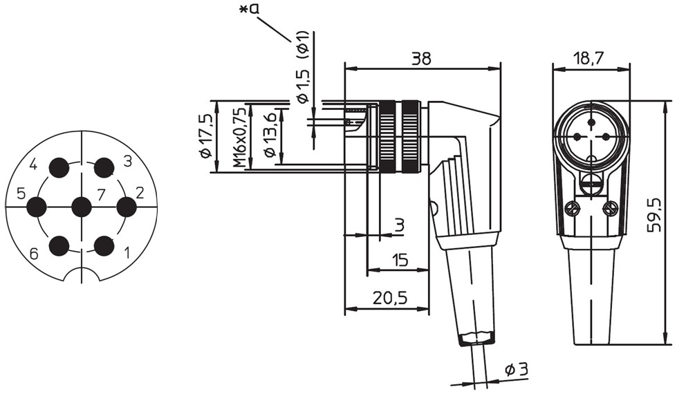 מחבר תעשייתי DIN SV - זכר זוויתי להלחמה לכבל - 7 מגעים