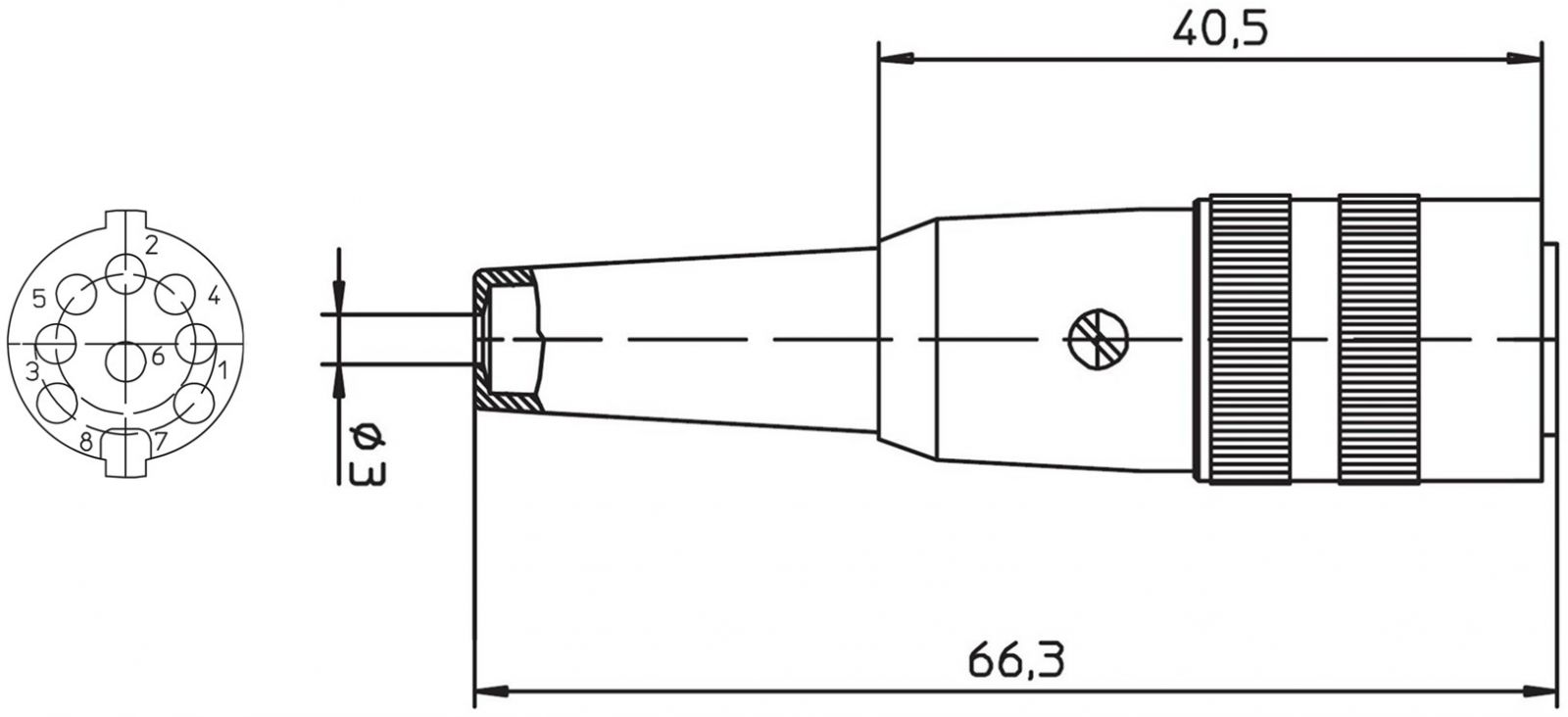 מחבר תעשייתי DIN SV - נקבה להלחמה לכבל - 8 מגעים