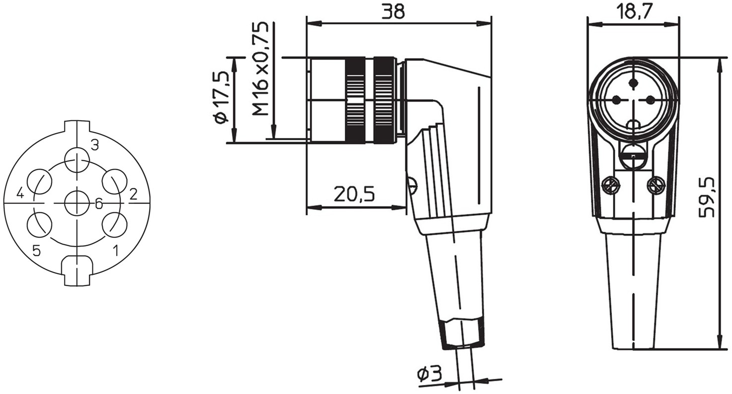 מחבר תעשייתי DIN SV - נקבה זוויתי להלחמה לכבל - 6 מגעים