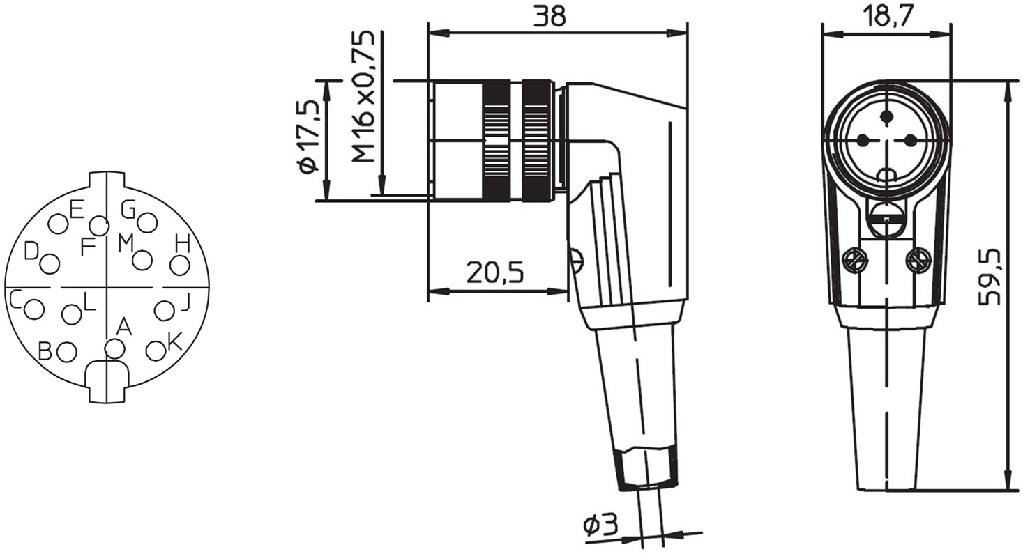 מחבר תעשייתי DIN SV - נקבה זוויתי להלחמה לכבל - 12 מגעים