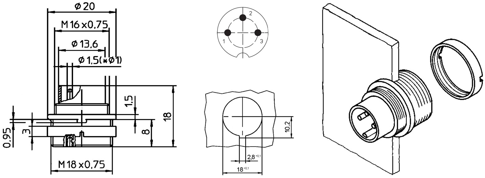 מחבר תעשייתי DIN SV - זכר להלחמה לפנל - 3 מגעים