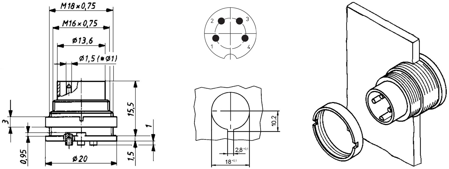מחבר תעשייתי DIN SV - זכר להלחמה לפנל - 4 מגעים