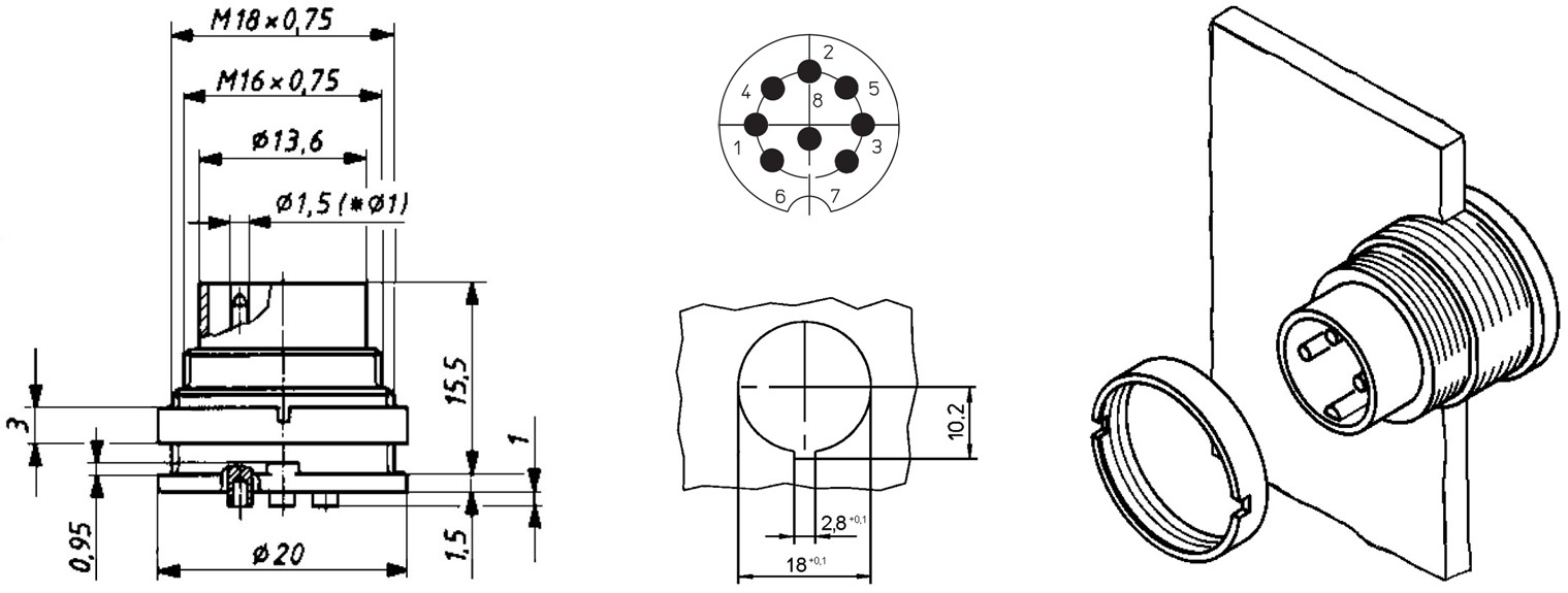 מחבר תעשייתי DIN SV - זכר להלחמה לפנל - 8 מגעים