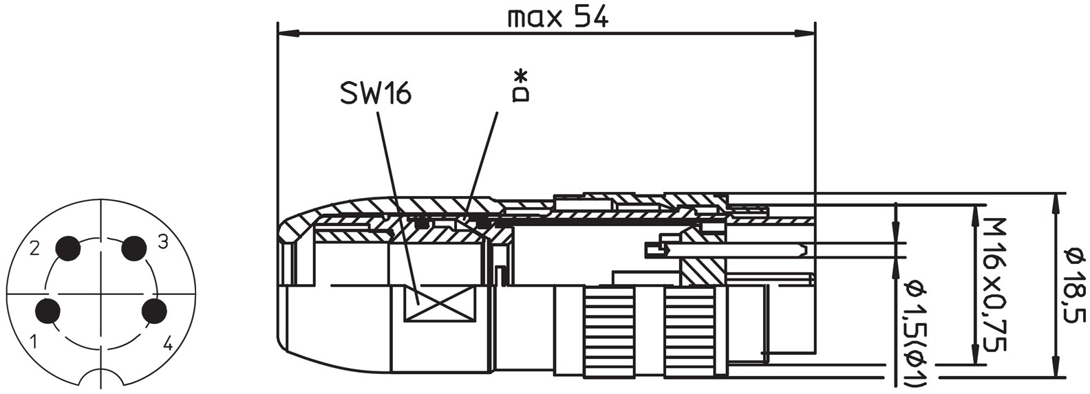 מחבר תעשייתי DIN 0332 - זכר להלחמה לכבל - 4 מגעים