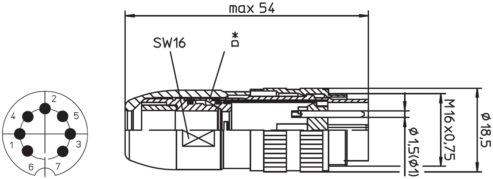 מחבר תעשייתי DIN 0332 - זכר להלחמה לכבל - 7 מגעים