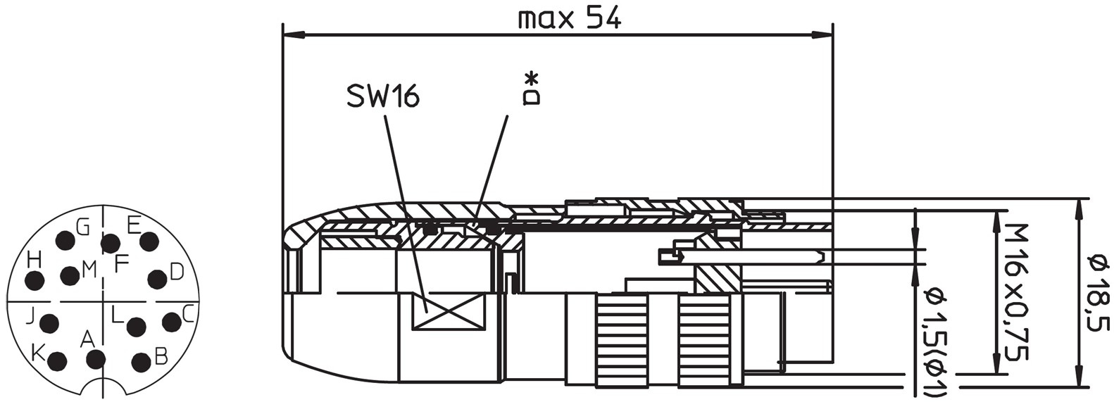 מחבר תעשייתי DIN 0332 - זכר להלחמה לכבל - 12 מגעים
