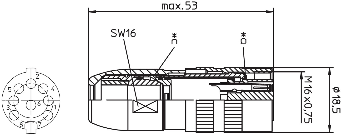 מחבר תעשייתי DIN 0332 - נקבה להלחמה לכבל - 8 מגעים