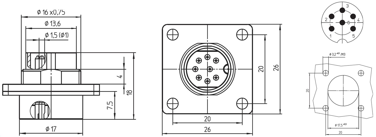 מחבר תעשייתי DIN 0332 - זכר להלחמה לפנל - 6 מגעים