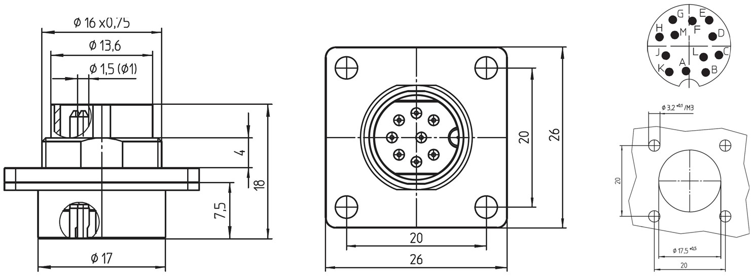 מחבר תעשייתי DIN 0332 - זכר להלחמה לפנל - 12 מגעים