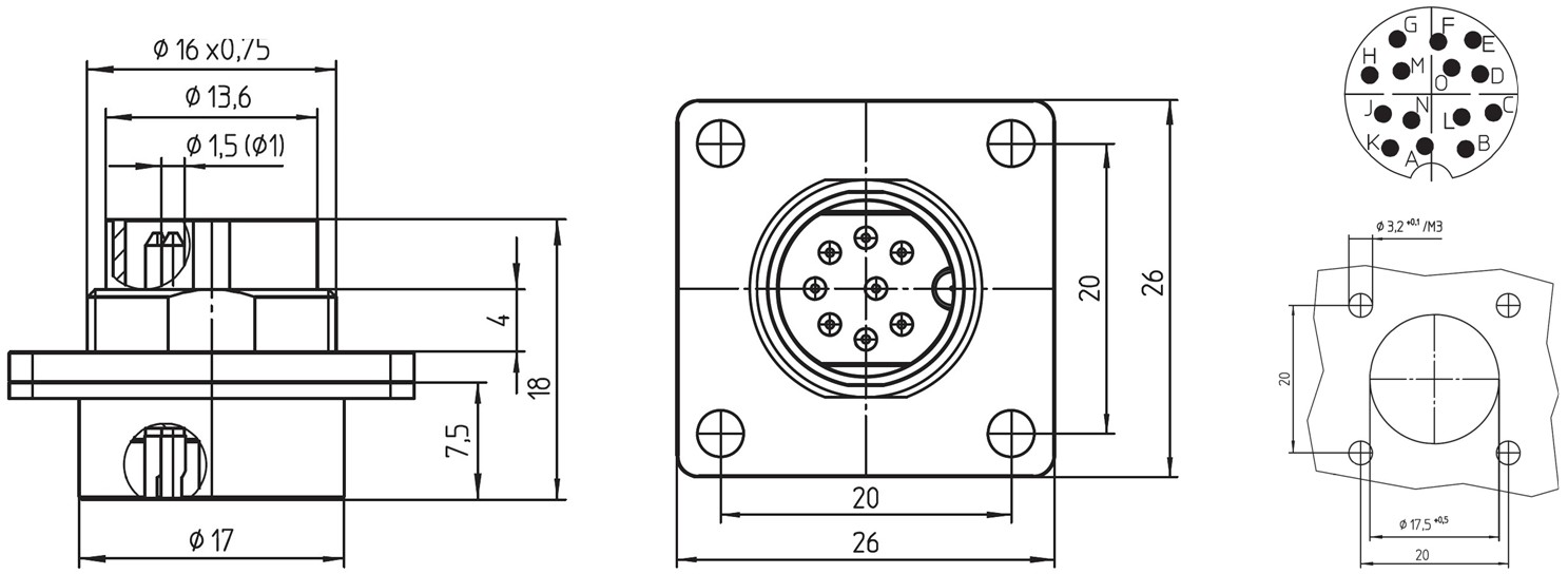 מחבר תעשייתי DIN 0332 - זכר להלחמה לפנל - 14 מגעים
