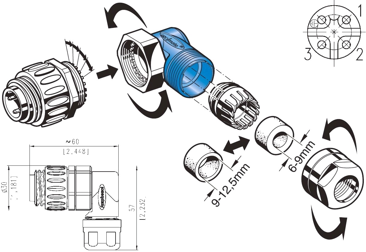 מחבר תעשייתי C016 - זכר זוויתי להברגה לכבל - 3 מגעים + הארקה AMPHENOL ועוד קונקטורים, מחברים ומתאמים. לחצו למיפרט טכני מלא. צרו קשר לייעוץ מקצועי: 04-8520233