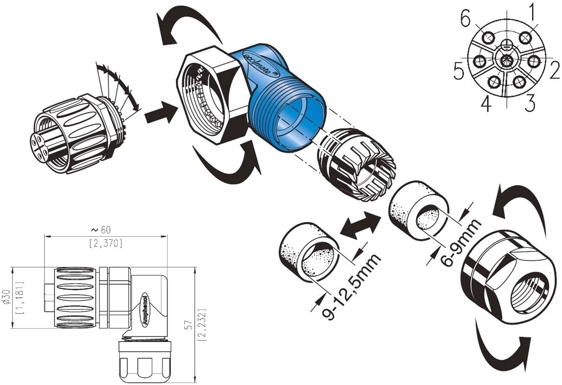 מחבר תעשייתי C016 - נקבה זוויתית ללחיצה לכבל - 6 מגעים + הארקה AMPHENOL ועוד קונקטורים, מחברים ומתאמים. לחצו למיפרט טכני מלא. צרו קשר לייעוץ מקצועי: 04-8520233
