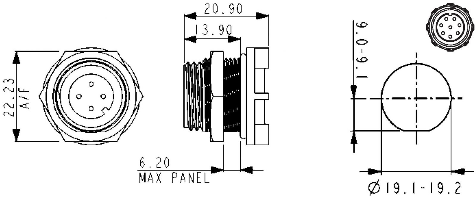 ♦ מבנה המחבר : REAR PANEL MOUNT PLUG