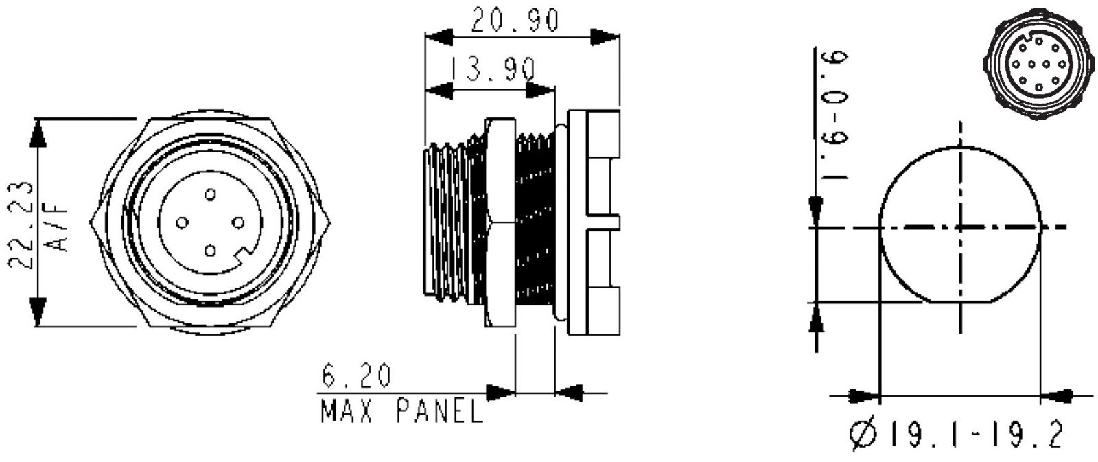 ♦ מבנה המחבר : REAR PANEL MOUNT PLUG