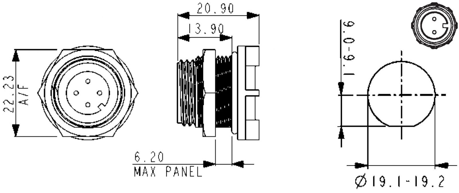 ♦ מבנה המחבר : REAR PANEL MOUNT SOCKET
