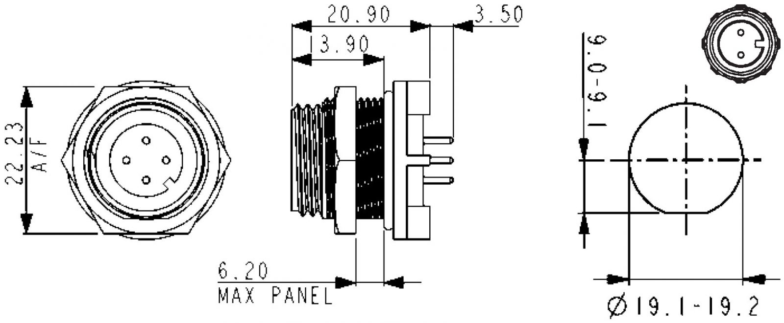♦ מבנה המחבר : REAR PCB PANEL MOUNT PLUG