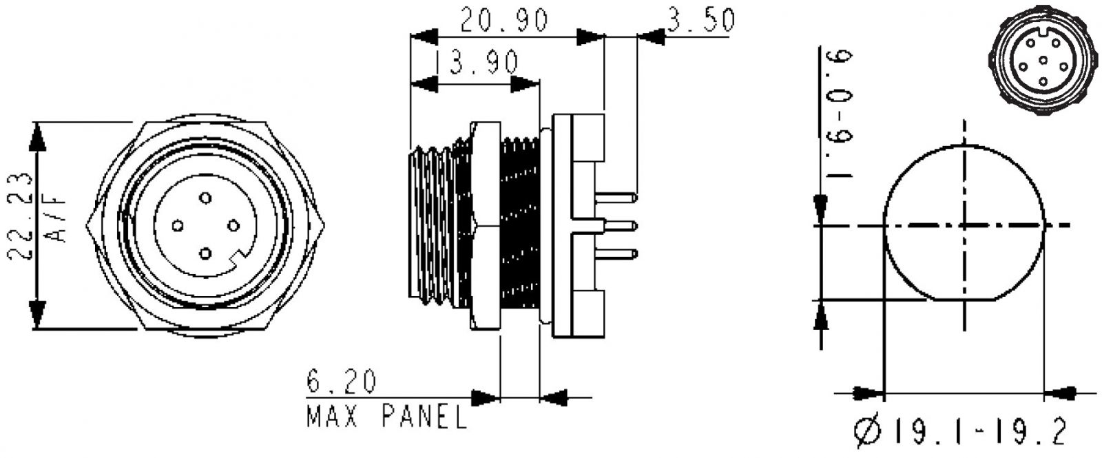 ♦ מבנה המחבר : REAR PCB PANEL MOUNT PLUG