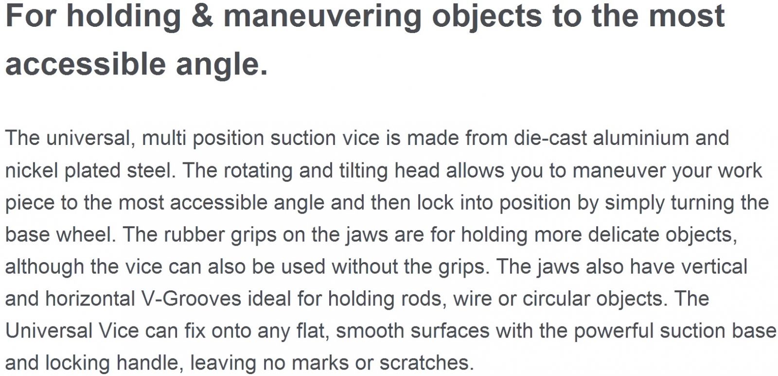 | 5774702 מלחציים ואקום כדוריות לשולחן מיציקת אלומיניום - MODELCRAFT PVC7012 | MODELCRAFT | מלחציים ואקום כדוריות לשולחן מיציקת אלומיניום - MODELCRAFT PVC7012 ♦ ראש מסתובב 360 מעלות ומוט... כלי עבודה ידניים » מלחציים , קליבות וסדנים | כמות |
