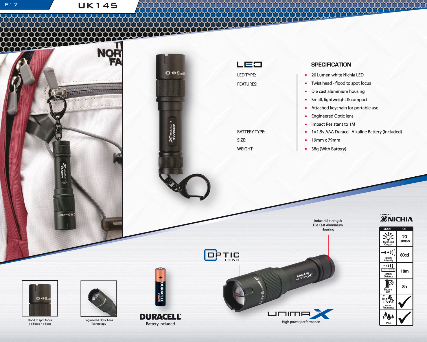 | 0358812 פנס מקצועי למחזיק מפתחות - UNI-LITE UK145 - 20 LUMENS | UNI-LITE | פנס מקצועי למחזיק מפתחות - UNI-LITE UK145 - 20 LUMENS ♦ גוף אלומיניום תעופתי♦ זווית תאו... נורות , פנסים ומוצרי תאורה » פנסים | לא ניתן להזמין - אזל המלאי |
