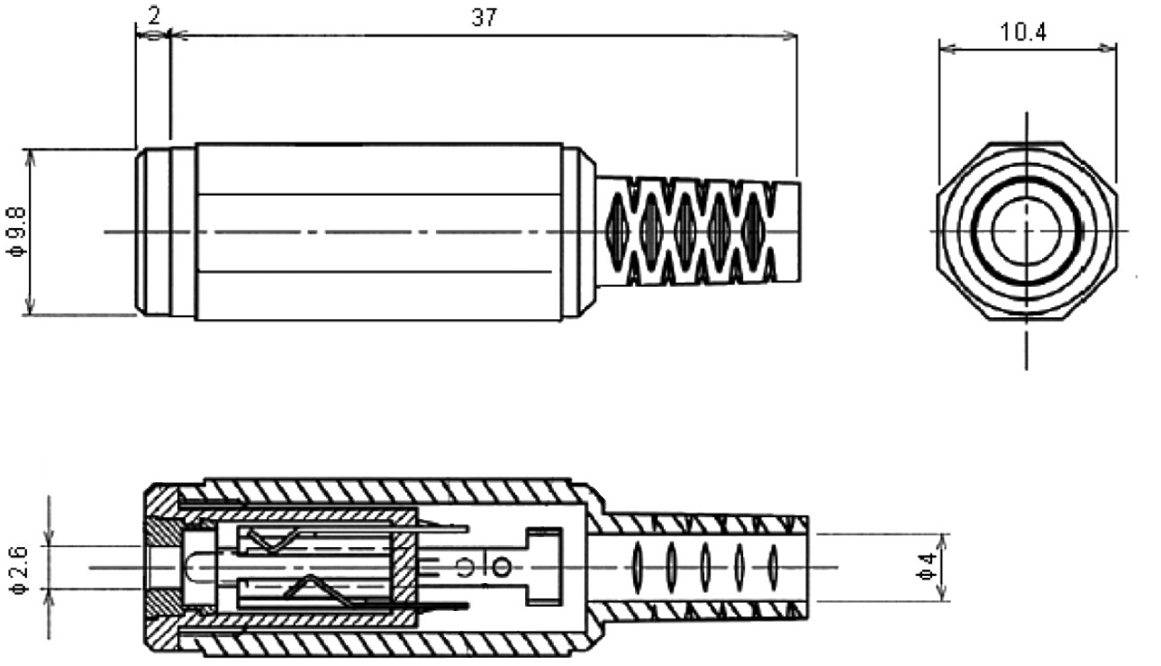 מחבר PL 2.5MM נקבה עם 4 מגעים להלחמה לכבל