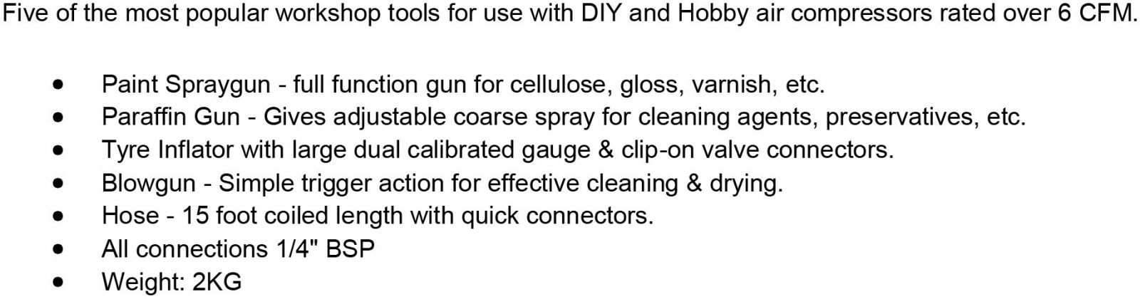 | 5644442 סט אביזרים מושלם לקומפרסור | CLARKE | סט אביזרים בסיסי לקומפרסור ♦ סוג חיבור : ''BSP 1/4 הסט כולל : ... כלי עבודה נטענים / חשמליים » קומפרסורים , גנרטורים ואביזרים | לא ניתן להזמין - אזל המלאי |