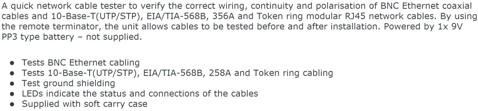 | 8767721 בודק כבלי תקשורת PROSKIT 3PK-NT007 - RJ45 / BNC | PROSKIT | בודק כבלי תקשורת PROSKIT 3PK-NT007 - RJ45 / BNC ... ציוד בדיקה ומכשירי מדידה » ציוד בדיקה לטכנאי תקשורת | כמות |