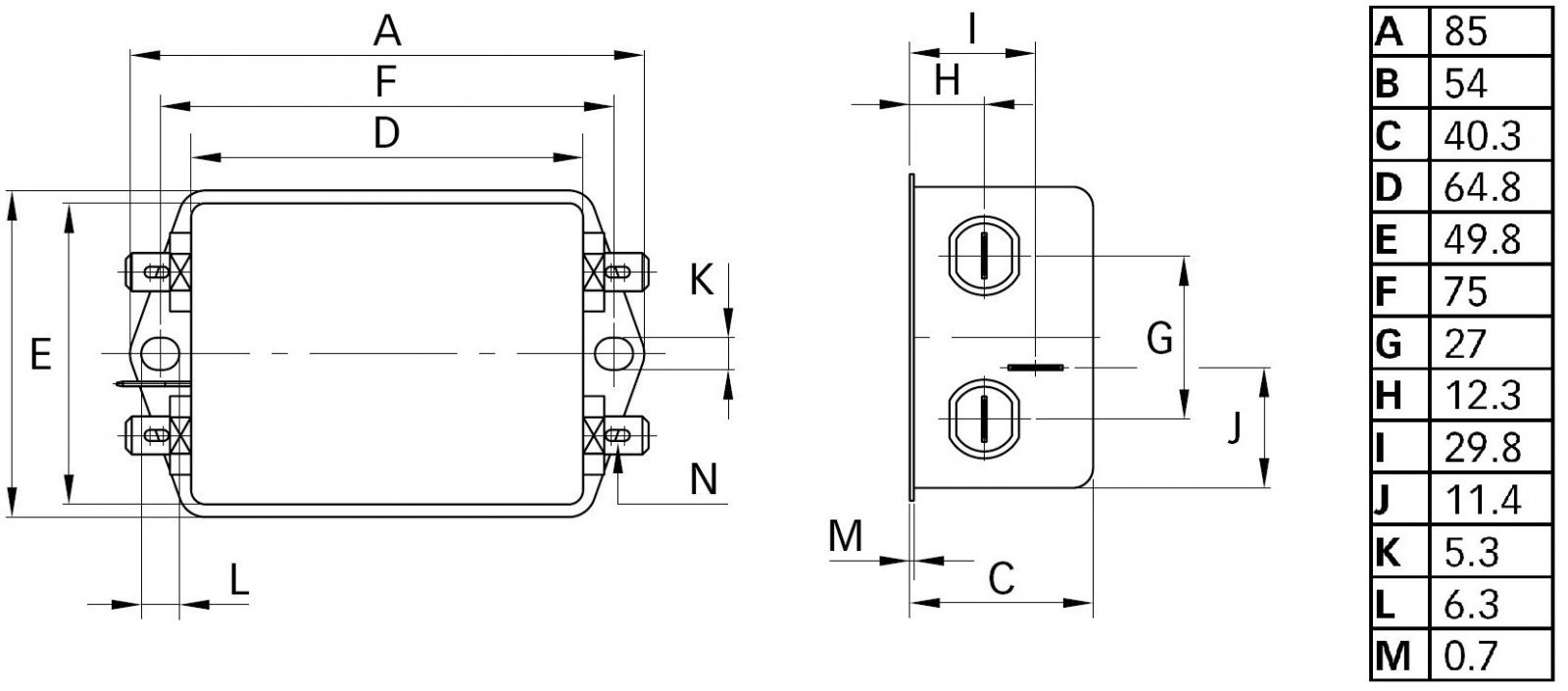 מסנן EMC / RFI עם חיבור לפאנל - סדרה 16A - FN2030