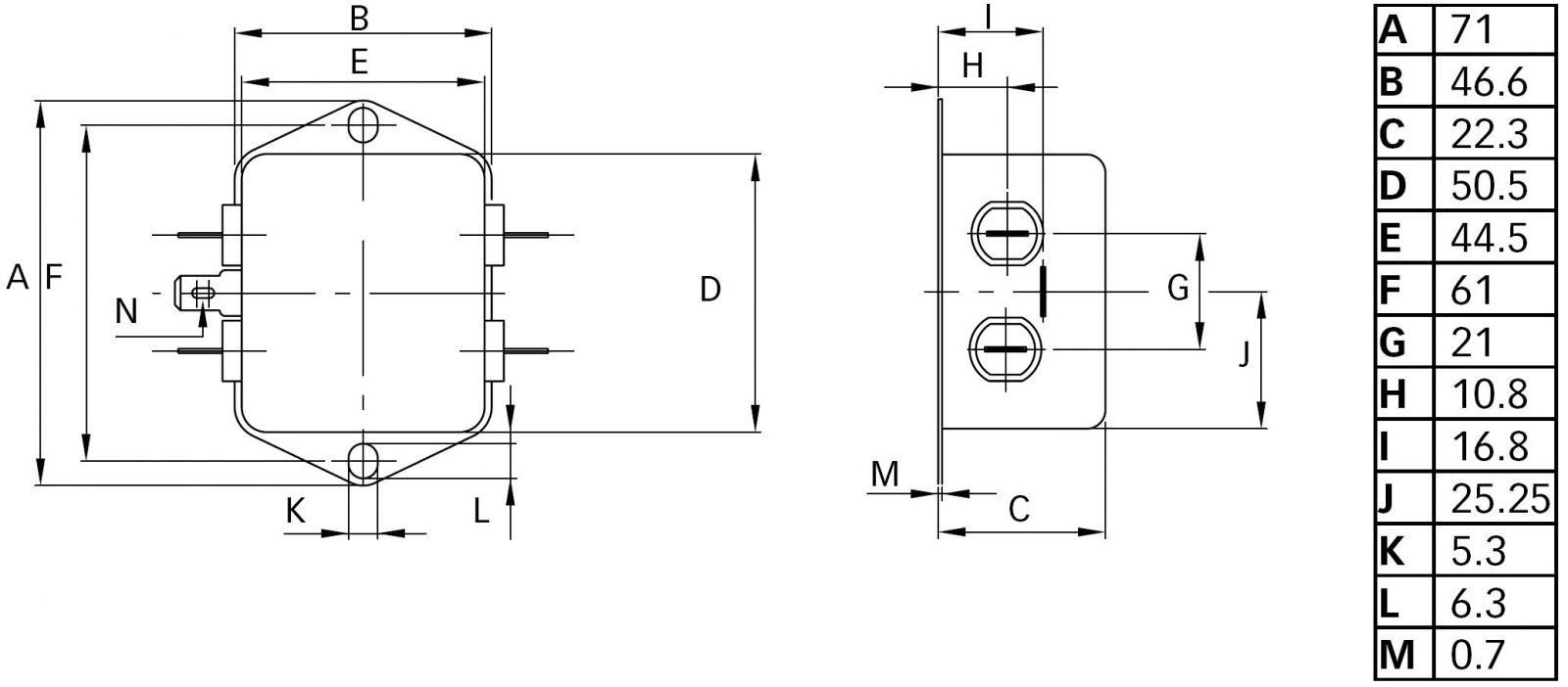 מסנן EMC / RFI עם חיבור לפאנל - סדרה 6A - FN2030B
