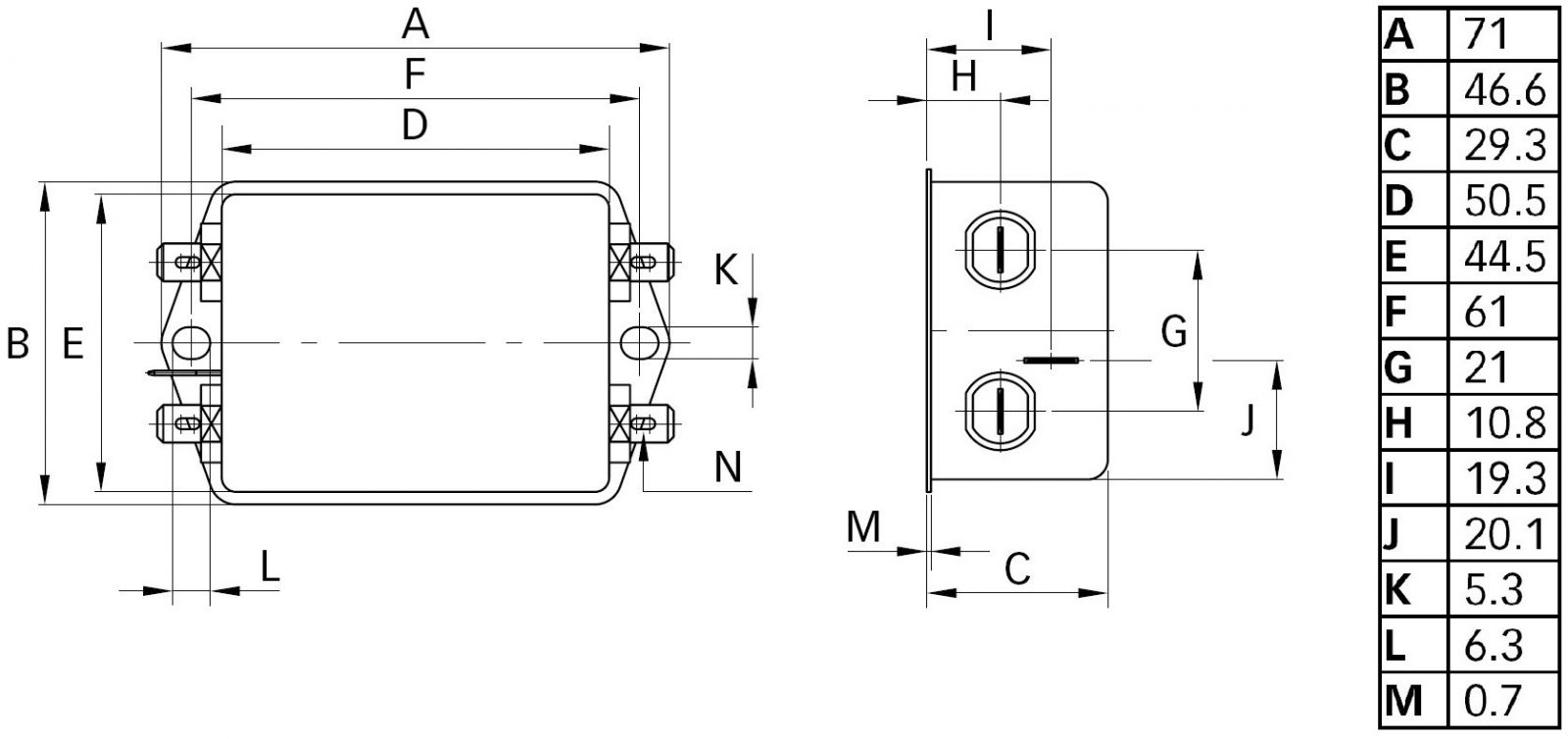 מסנן EMC / RFI עם חיבור לפאנל - סדרה 1A - FN2060