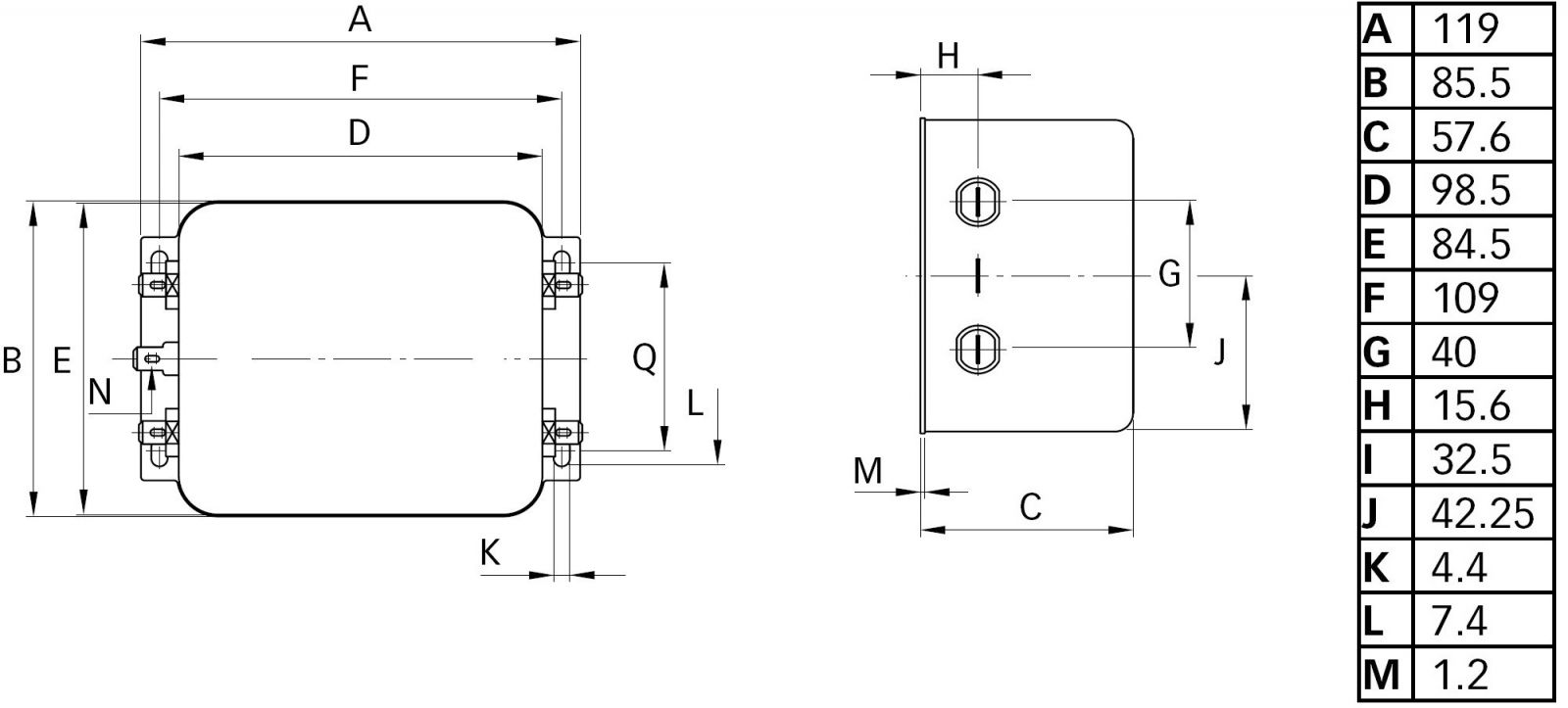 מסנן EMC / RFI עם חיבור לפאנל - סדרה 16A - FN2070